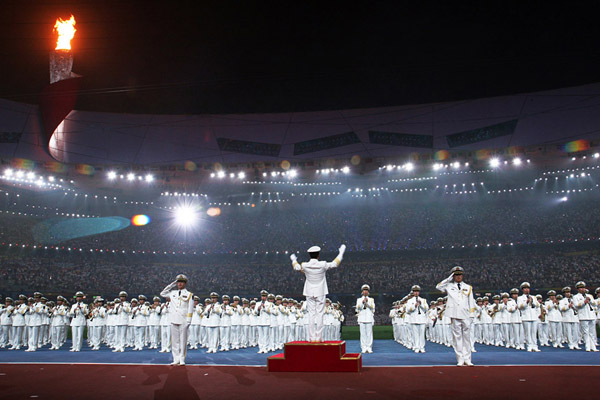 在2008年奥运会闭幕式上进行仪式演奏