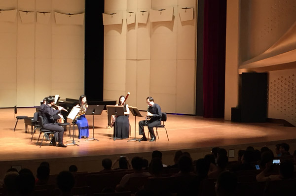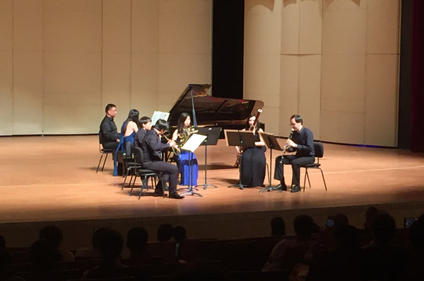 北京的天气虽然炎热,但挡不住广大听众对音乐的执著和喜爱。6月29日晚中央音乐学院歌剧厅迎来了一场由中央音乐学院交响乐团的管乐首席演奏家们齐心协力共同完成的全新曲目室内乐重奏音乐会。这场音乐会是近年来最有质量、最让人激动的一场管乐室内乐重奏视听盛宴。此次管乐室内乐重奏专场音乐会是由中央音乐学院管弦系主任赵瑞林教授和指挥系主任陈琳教授共同倡议,并得到院长俞峰教授的大力支持,在各部门领导的合理协调和积极努力下,顺利地完成了这场高规格、高水准的音乐会。