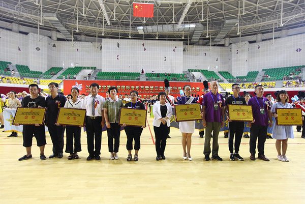 行进旗舞组合金奖获得者:北京市海淀区玉泉小学旗舞社团,河南省郑州市金水区南阳路第二小学“炫彩“旗舞团,首都师范大学附属育新学校行进旗舞团(共3名)