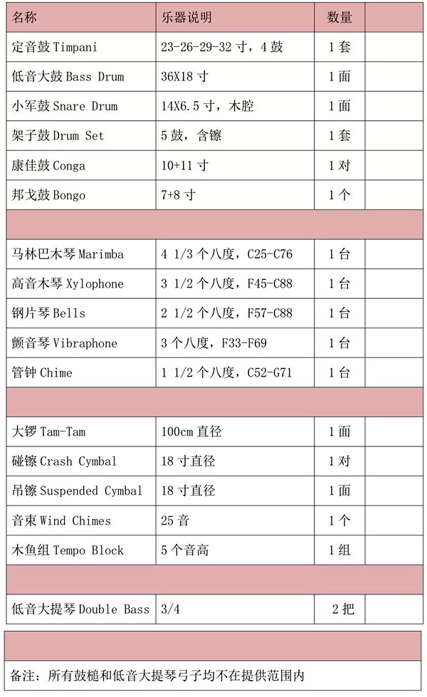 4、活动场地提供座椅、谱架以及乐团演奏平台,及指定的大型打击乐器。