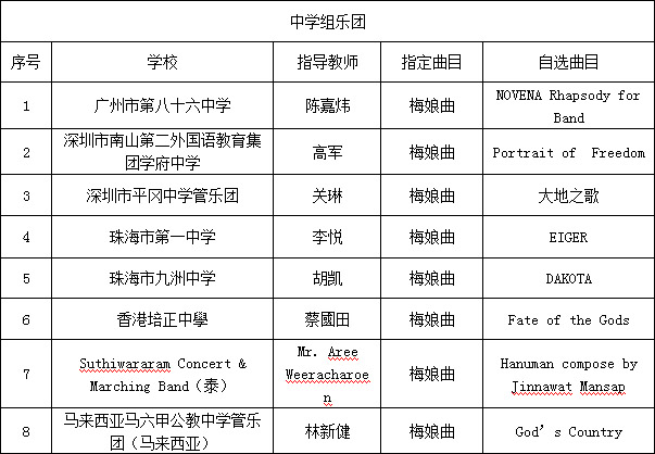 1、指定曲目:将于稍后提供报名参与活动的乐团(队)