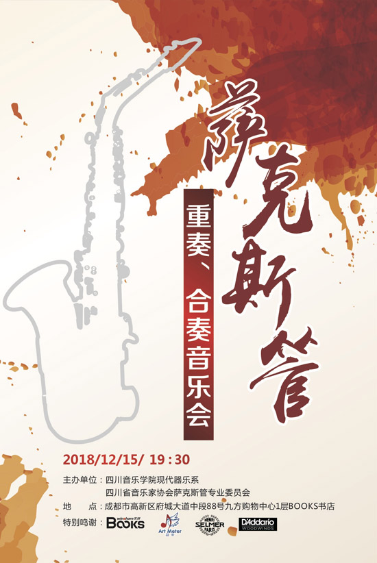 主办单位:四川音乐学院现代器乐系、四川省音乐家协会萨克斯管专业委员会
