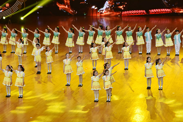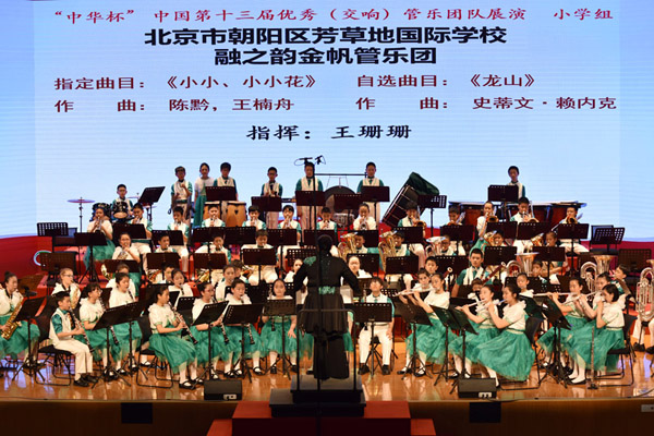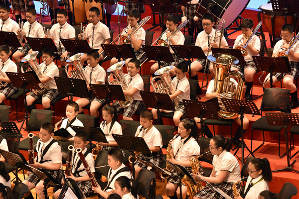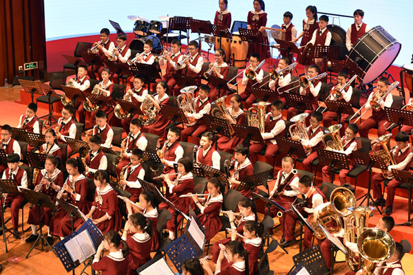 5月1日晚在复旦正大体育馆举行的开幕式暨管乐表演晚会上,中外乐手、合唱演员一起演绎了《我的祖国》、《歌唱祖国》、《我和我的祖国》等脍炙人口的歌曲。为新中国70华诞献上祝福是今年管乐节的主题。晚会上,北京市大兴区亦庄第一中心小学“阳光精灵”行进打击乐团以《听妈妈讲……》,带领观众回顾新中国成立70年来的光辉印迹。