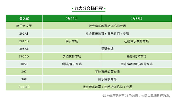 九大分会场,涵盖管乐、钢琴、民乐、合唱、舞蹈、在线音乐教育、音乐启蒙教育、学校音乐教育、社会音乐教育各大细分教育版块。
