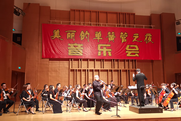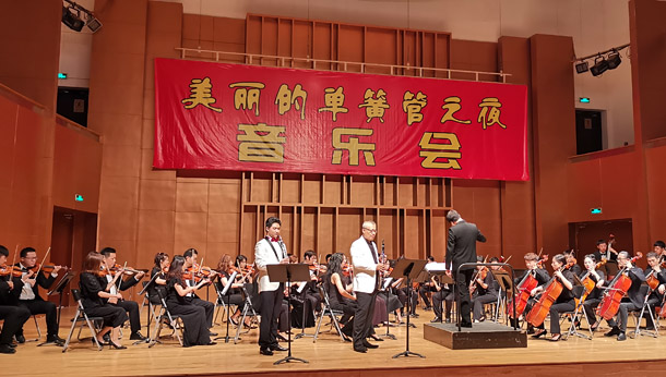 中央音乐学院范磊教授携爱徒,青年演奏家林宸锐,一同演奏门德尔松双单簧管协奏曲,在开场就引得观众掌声雷动,如此精彩的演奏,在福建当地是前所未有的。