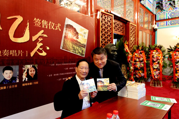 双簧管演奏专辑《忆念》中的所有曲目均是由祝盾先生创作,并由他的高徒-中央音乐学院双簧管教授金京春先生以及著名钢琴家周醒女士演奏录制。值祝盾教授从教60年之际,这盘专辑由中国青年出版社正式发行!晚上6点,签售会正式开始,爱好者闻讯蜂拥而至。短短四十分钟,85岁高龄的祝盾教授竟签售百余张专辑。