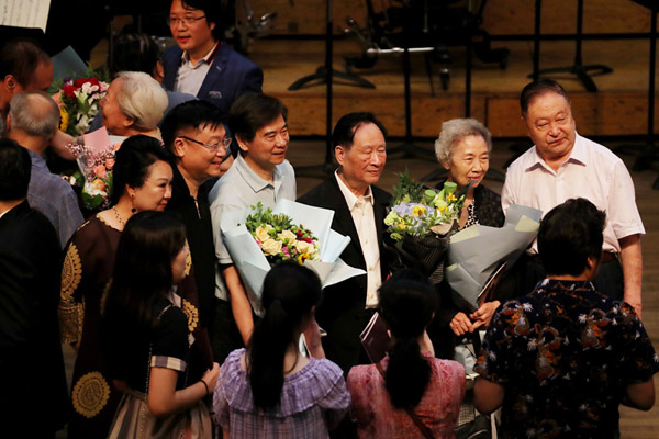曲目演奏结束后,祝盾教授上台感谢到场的嘉宾、听众,感谢母校的培育、感谢学生们不远千里回归母校为他举行这次音乐会。在谈到父亲及从艺之路,祝盾教授曾一度哽咽。在60年间的种种仿佛在《忆念》悠然响起时浮现在眼前……
