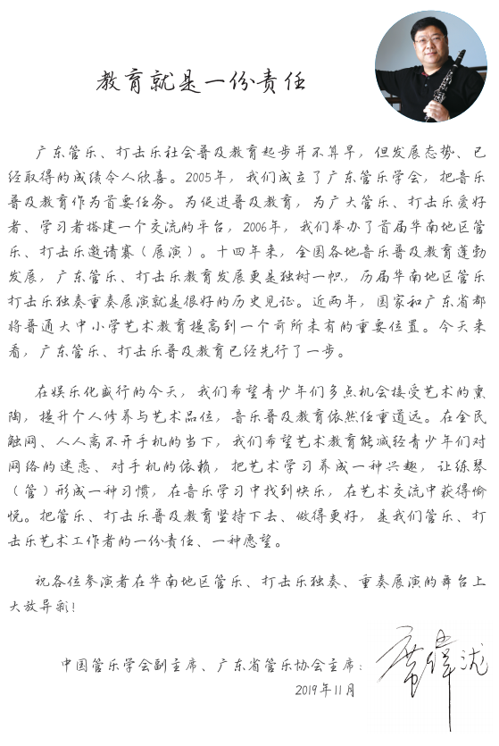 2019华南地区第十届管乐、打击乐独奏、重奏展演 强大的评委阵容