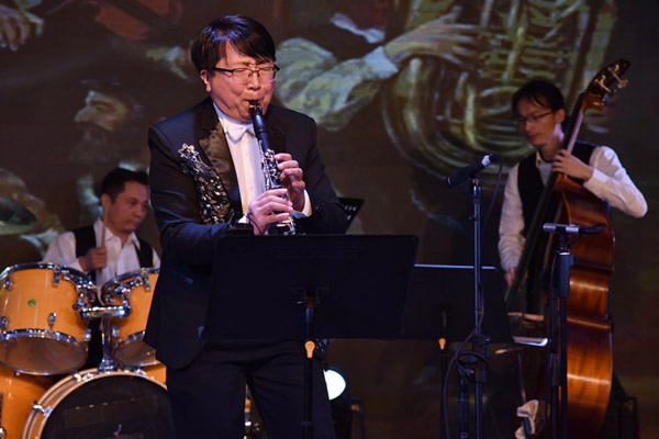 接着是由著名单簧管演奏家、国家一级演员、北京单簧管协会会长、陶旭光老师携马甲乐队精彩演绎的4首克莱兹默(Klezmer)犹太民族音乐作品,把音乐会带入了一个小高潮,丰富的演奏技法、灵活多样的力度变化,尽情欢乐,灵活舞动的音乐与舞台表现赢得了观众的阵阵掌声。