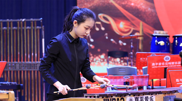 少年演奏员陈佳君带来了马林巴独奏曲《风纹》,陈佳君还邀请她的好朋友东马路小学的刘欣然同学共同演奏了马林巴二重奏《捕风捉影》,她们仅仅排练了两次,就让观众感受到了摇滚乐与古典乐的巧妙融合,两位打击乐小演员默契的配合,耳目一新的演奏赢得了在场观众的热烈掌声。