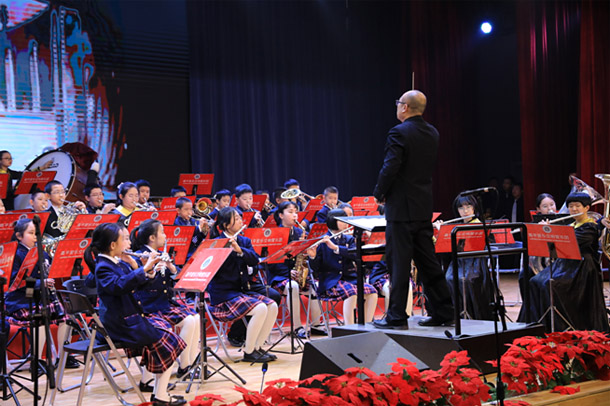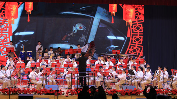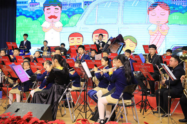 石家庄市北新街和韵管乐团、石家庄合作路小学飞梦管乐团、石家庄市金柳林外国语学校管乐团、石家庄市东马路梦•绽放管乐团分别演奏了《大中国》《樱桃小丸子》《星球大战》《康康舞曲》四首曲目,展示了学生管乐团积极向上的风貌以及学校对管乐教育的高度重视和大力支持。