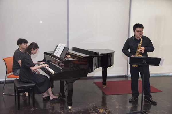 会议还就两方专家下一步的深度合作做了探讨。会议茶歇时间,青年萨克斯管演奏家全巍为代表们演奏了邹向平教授的新作品《舞曲》、美国作曲家Jeffrey Hoover《五行》中的两个乐章。