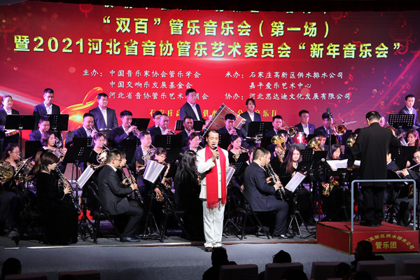 2020年12月27日下午16:00,由中国音乐家协会管乐学会、中国交响乐发展基金会、河北省音协管乐艺术委员会主办,石家庄高新区供水排水公司、嘉平爱乐艺术中心承办,河北思达迪文化发展有限公司协办的庆祝中国共产党成立一百周年“双百”管乐音乐会(第一场)暨2021河北省音协管乐艺术委员会“新年音乐会”,在石家庄高新区供水排水公司音乐厅成功举办。