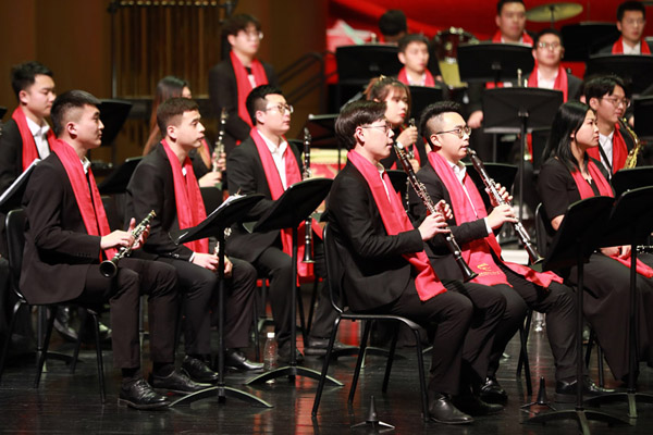 并特邀苏州大学小号教师刘晶晶、萨克斯教师薛驭生分别演奏了小号三重奏与乐队《号手的节日》、高音萨克斯管与乐队《草原夜色美》,除此之外还演奏了长笛二重奏与乐队《闪亮的长笛》、长号重奏与乐队《长号之家》,让观众充分领略了单类乐器与乐队协奏的魅力。