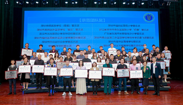 颁奖典礼上,主办方公布了示范团队奖、优秀团队奖、展演团队奖;论文评选的一、二、三等奖;以及从3000名参与演奏的小选手中评选出的10名网络人气奖,并为大家颁发了奖牌和证书。