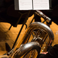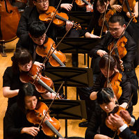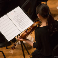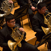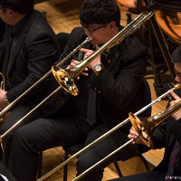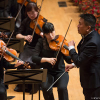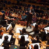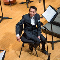 中央音乐学院乐队学院的这次的音乐会不同于往常的是,会在音乐会正式开场之前的7:15分,增添由EOS乐团音乐总监胡咏言先生进行"导赏"环节,所谓导赏,是指对于本场音乐会所演出的作品进行讲解及指导性的描述。这在北京的古典音乐会上是几乎没有出现过的。本场音乐会均为法国作品,法国也几乎是浪漫的代名词,德彪西、弗朗塞、柏辽兹三位作曲家的作品会在同一场音乐会被EOS乐团的艺术家们精彩的演绎。(摄影:张武)