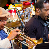 温顿·马萨利斯五重奏与Sachal爵士乐团参加2013马尔西亚克爵士音乐节。马尔西亚克爵士音乐节(Jazz in Marciac)在30多年前由几位朋友创建,它是欧洲最早的爵士音乐节之一。每年夏季在8月的前两周,大约有20万名观众前来在魅力难以抵挡的氛围中,为爵士乐明星们鼓掌欢呼。戴安娜.克瑞儿(Diana Krall)、比雷利.拉格雷讷(Bireli Lagrene)、迪迪埃.洛克伍德(Didier Lockwood)、基斯.贾勒特(Keith Jarrett)、桑尼.罗林斯(Sonny Rollins)、温顿.马萨利斯(Wynton Marsalis),等等,如此多的非凡艺术家让马尔西亚克成为一个令人依恋的港口。摄影:Luigi Beverelli