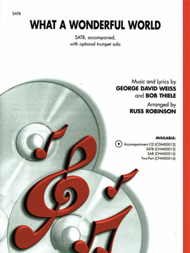 Few songs ever become hits as this one did for Louis Armstrong. He defined a style of music all his own and yet influenced every style existing to thi s day. Russ Robinson has done an incredible job of bringing all of these el ements to life in this arrangement of the famous song. Done with optional t rumpet solo part, the piece is truly becoming of Satchmo. All three voicing s are beautiful and will touch the hearts of any audience.