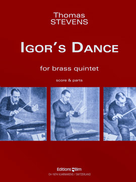 Igor’s Dance is a virtuosic, molto allegro parody of the Ballerina’s Dance from Igor Stravinsky’s Petrouchka, with the quintet parts including some isolated musical elements, such as single rhythmic figures or motives from some of Stravinsky’s early 20th century orchestral works. The main thematic material of “Igor’s Dance, and the only direct Stravinsky musical quote, is derived from the first measure of the solo cornet part in the original 1911 version of Petrouchka.
