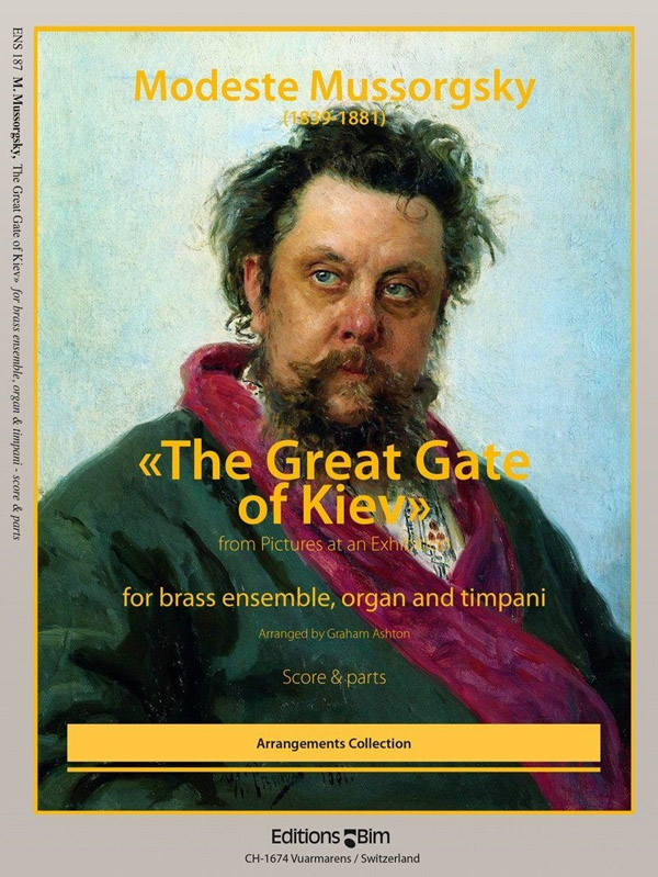 《基辅大门》是穆索尔斯基的《展览会上的图画》组曲中的第十曲,乐曲是根据已决定在基辅建造的城市大门设计图所得的灵感而作的。 由稳重的主题开始,逐渐增强之后,突然变成了平静的圣咏调。然后先前的主题再度强有力地出现,八度音程的上下移动在此增添了辉煌的色彩。 接着经过圣咏调的再现,开头主题更加壮大,最后的尾奏像是再次把主题的精力全部释放出来一样,全曲结束开始表达的是古俄罗斯军队出征时人民送行的场面,军队愈去愈远,送行的百姓的祝福。然后是军队凯旋的场景,士兵方队雄壮威武的通过基铺大门,与妻儿家小欢聚庆贺的场面。宏大、磅礴。