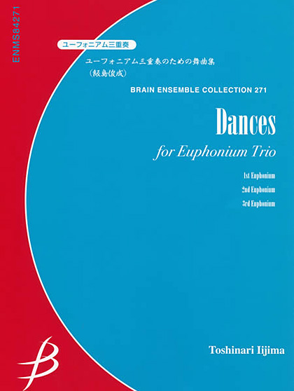 这首曲子是受奈良教育大学的上低音号演奏者委托作曲的。虽然曲名是“Dances”,但并没有采用实际的舞蹈动作和节奏。因此,请自由演奏每个乐章和声部,这是演奏时的提示。希望演奏者之间能发挥自己的想象,做出自己才能演奏的Dancing就好了。无论哪个声部都不轻松,而且合奏也有相当难的部分。另外,在比赛时可以其中一个声部用圆号替代,但会增加难度。作曲者:飯島俊成(Toshinari Iijima)ENMS-84271